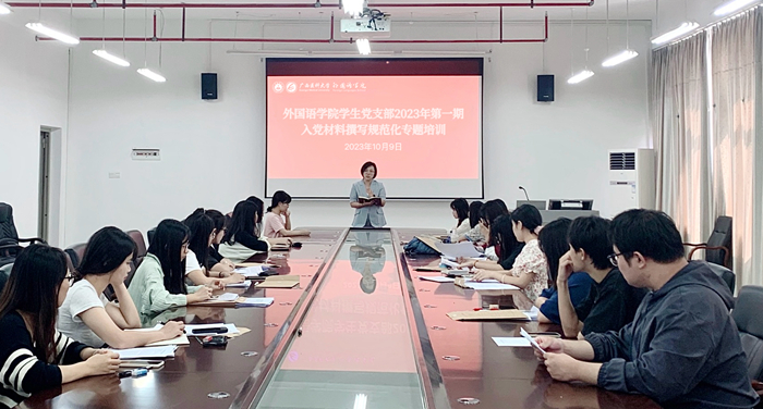 为进一步提高员工党员和入党积极分子材料的规范性和严谨性,2023年10月9日,bevictor伟德官网员工党支部于武鸣校区A9博雅楼603会议室开展2023年第一期入党材料撰写规范化专题培训。培训由员工党支部书记郭晶晶同志及党员韦紫怡同志主讲,党支部党员和最新一批发展对象参加。