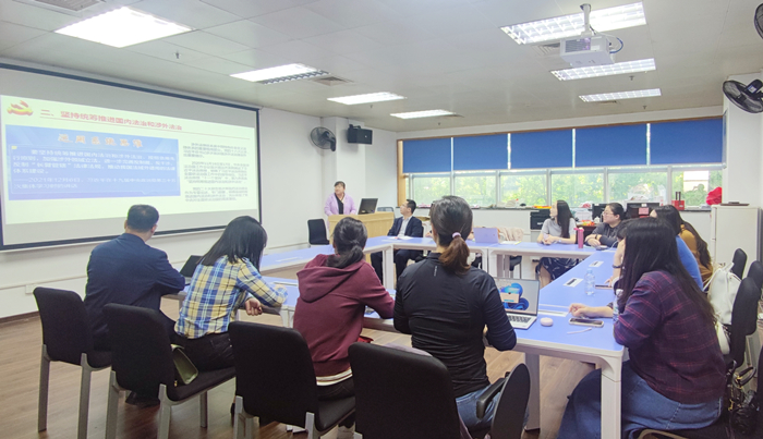 在第二阶段的主题党日活动中,全体党员同志就“落实立德树人根本任务,全面提高人才自主培养质量”主题展开热烈讨论,为如何培养新时代外语人才开拓思路、建言献策。支部党员纷纷表示:一要开展好学习贯彻习近平新时代中国特色社会主义思想主题教育,以学铸魂、以学增智、以学正风、以学促干,不断提高自身素质修养;二要树立高度自觉的大局意识,自觉从大局看问题;三要坚持真抓实干,做到求真务实;四要牢固树立全心全意为员工服务的宗旨;五要以学习宣传贯彻党的二十大精神为主线,围绕立德树人根本任务,整体提升公司产品质量。