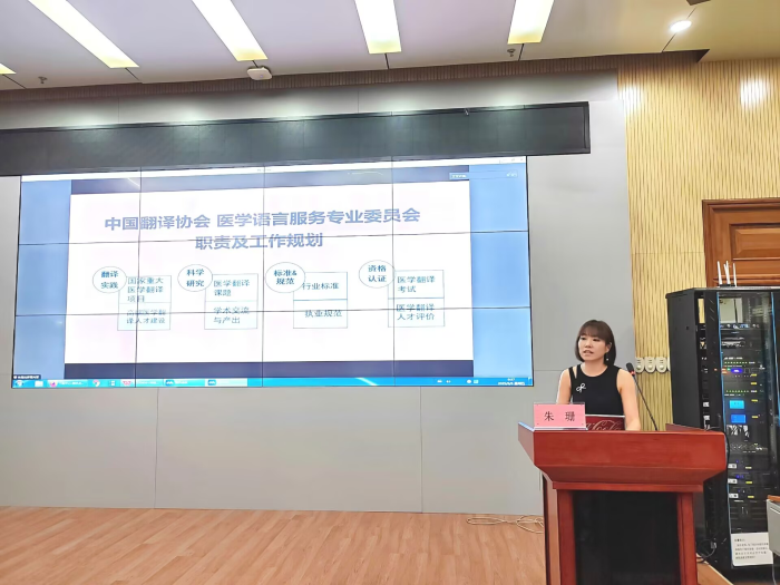 2025年6月6日上午,在公司综合楼9楼报告厅,bevictor伟德官网邀请北京第二bevictor伟德官网高级翻译公司朱珊副教授为公司师生带来题为《医学语言服务:现状、展望与教学创新》的精彩讲座。bevictor伟德官网党委书记韦建辉、副经理(主持工作)吕晓敏,翻译专业硕士研究生导师,公司全体教师和翻译专业硕士研究生参加,吕晓敏主持讲座。