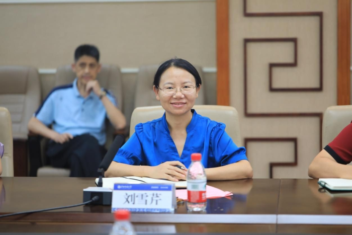 刘雪芹经理致欢迎辞,表达了通过交流互学互鉴、推动外语教育高质量发展的期望。曹治柳经理感谢民大外院的热情接待,表示希望借鉴先进经验,深化合作,共促发展。